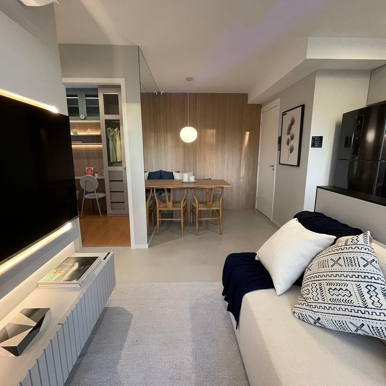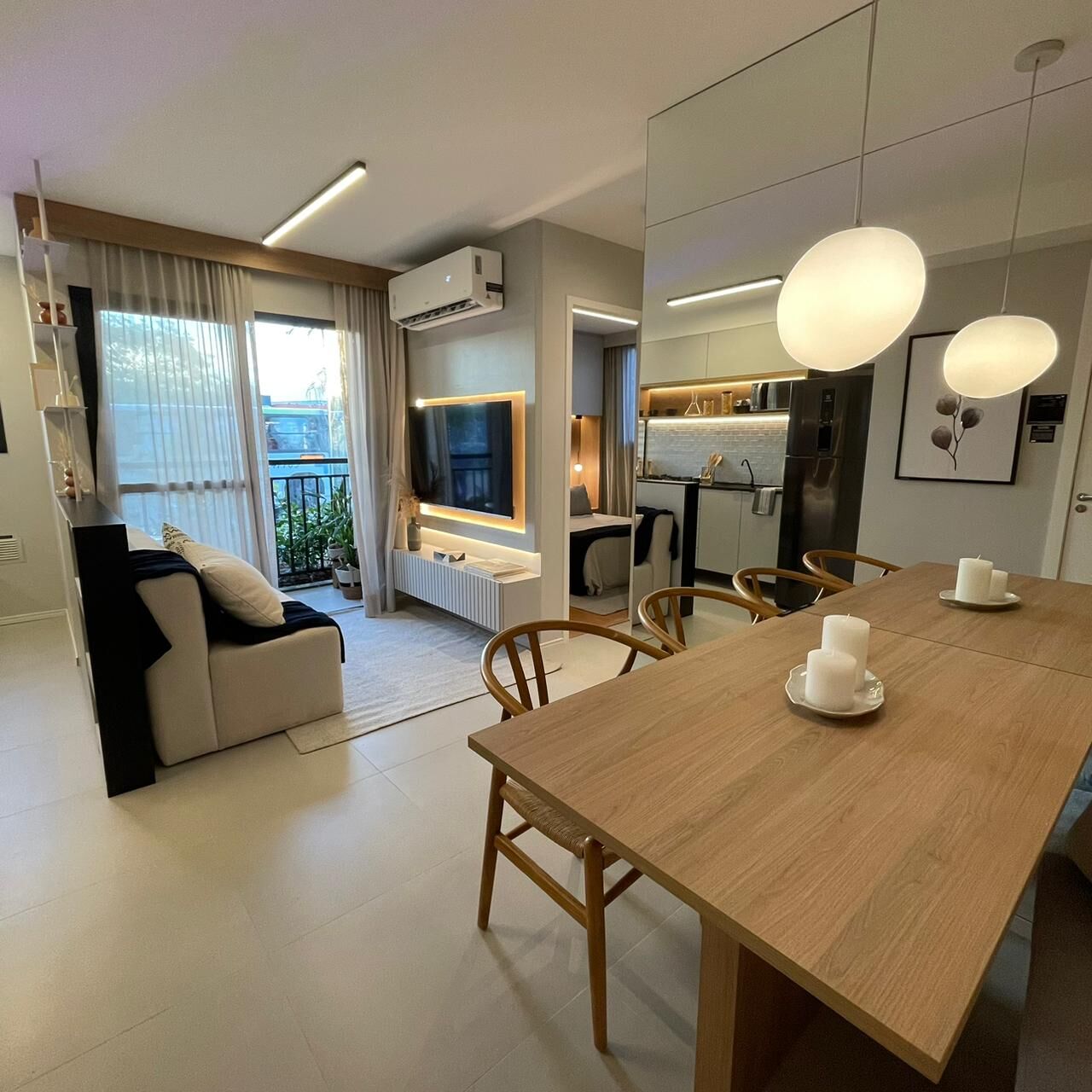 Apartamento de 2 quartos com varanda.