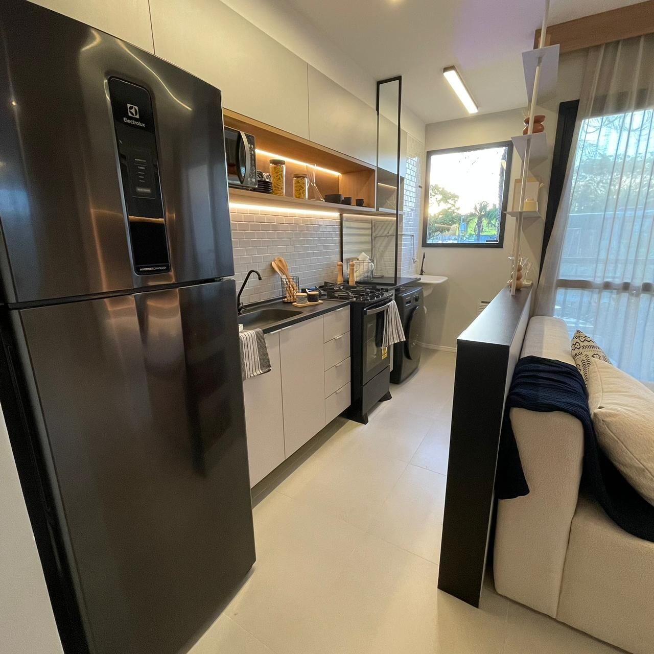 Espetacular apartamento de 1 quartos, banheiro social, sala grande com 2 ambientes, cozinha e área de serviço.
